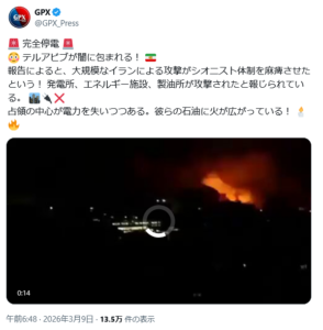 現実に、3/9の時点で、イラン側からの反撃、弾道ミサイル「数十発」の攻撃を受けて、中東の米軍基地は軒並み攻撃を受け、イスラエルのテルアビブは完全に停電し、イスラエル最北